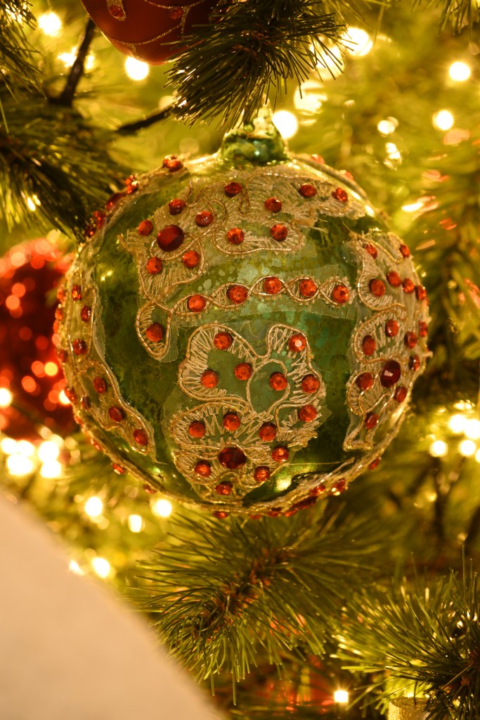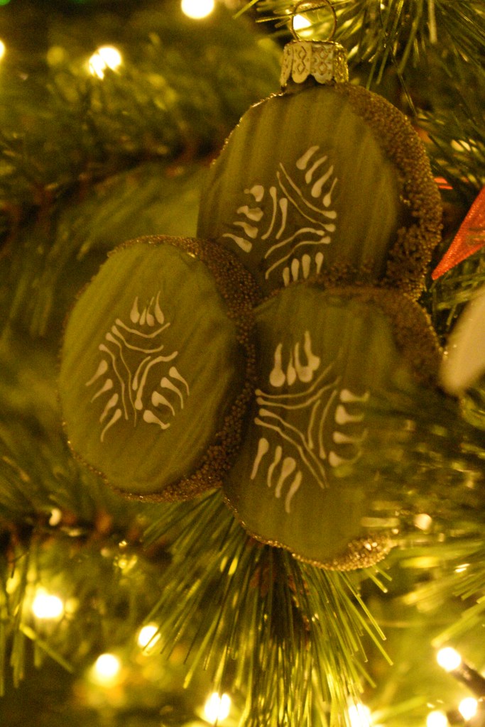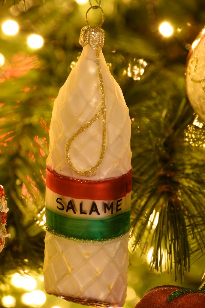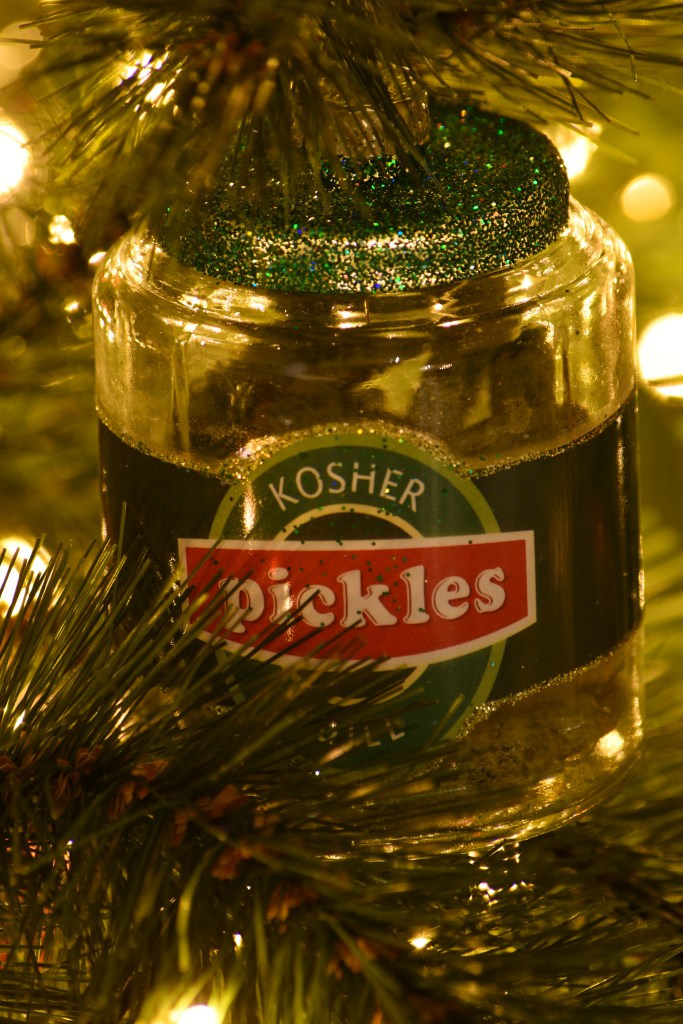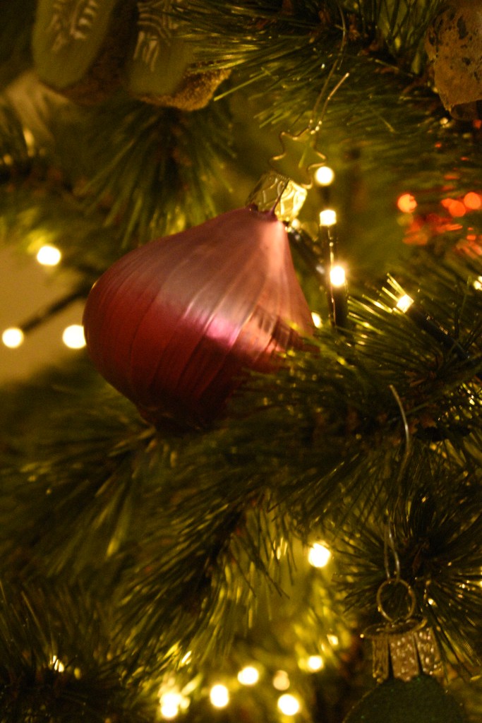 Toevallig reisden we het afgelopen jaar maar liefst drie keer naar een land met groen, rood en wit in de kleuren van de vlag: Hongarije, Bulgarije en Italië. Dé perfecte kerstkleuren als je ’t mij vraagt. En de Balkan? Dat is veel ajuin, augurken, pepers, paprika’s, look en tomaten. De ijspegels in deze boom zijn dan ook vervangen door … rode pepers en augurken in alle geuren en kleuren. Goed nieuws voor mijn collectie kerstaugurken die ik eindelijk nog eens kon bovenhalen! 😊