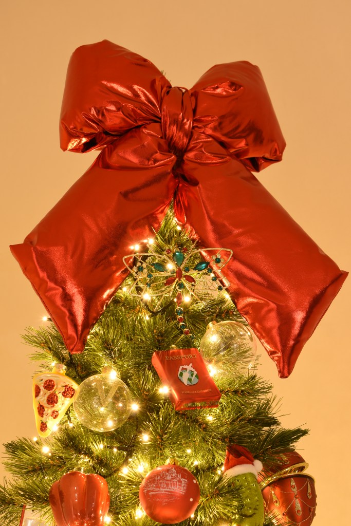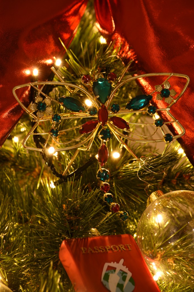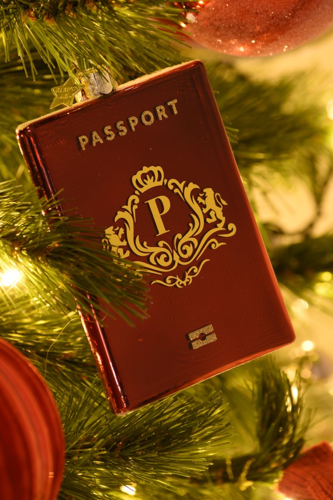 Deze groene boom is ongetwijfeld de vrolijkste van het gezelschap. De paspoorten, reiskoffers … verraden het al: onze reizen van het afgelopen jaar vormen het thema van deze boom. Het begon bij Hongarije en Bulgarije, bestemmingen die al langer in ons achterhoofd sluimerden, maar dit jaar gaf het universum ons het laatste signaal om er ein-de-lijk naartoe te gaan. 😉 Balkan called, en dat kun je zelfs letterlijk nemen als je sommige ornamenten in deze boom ziet.