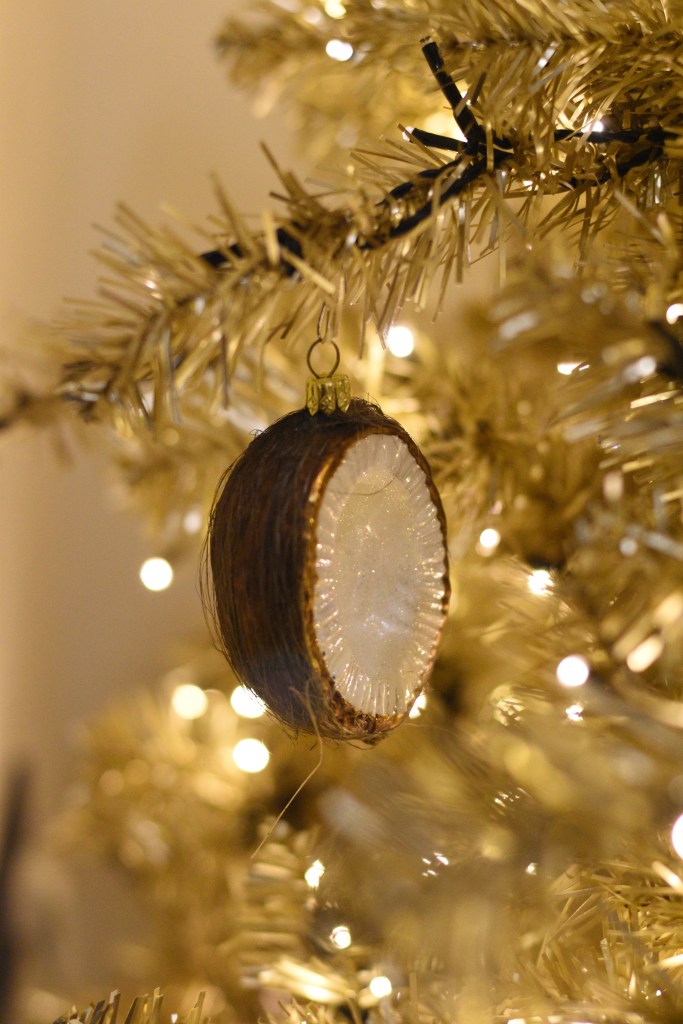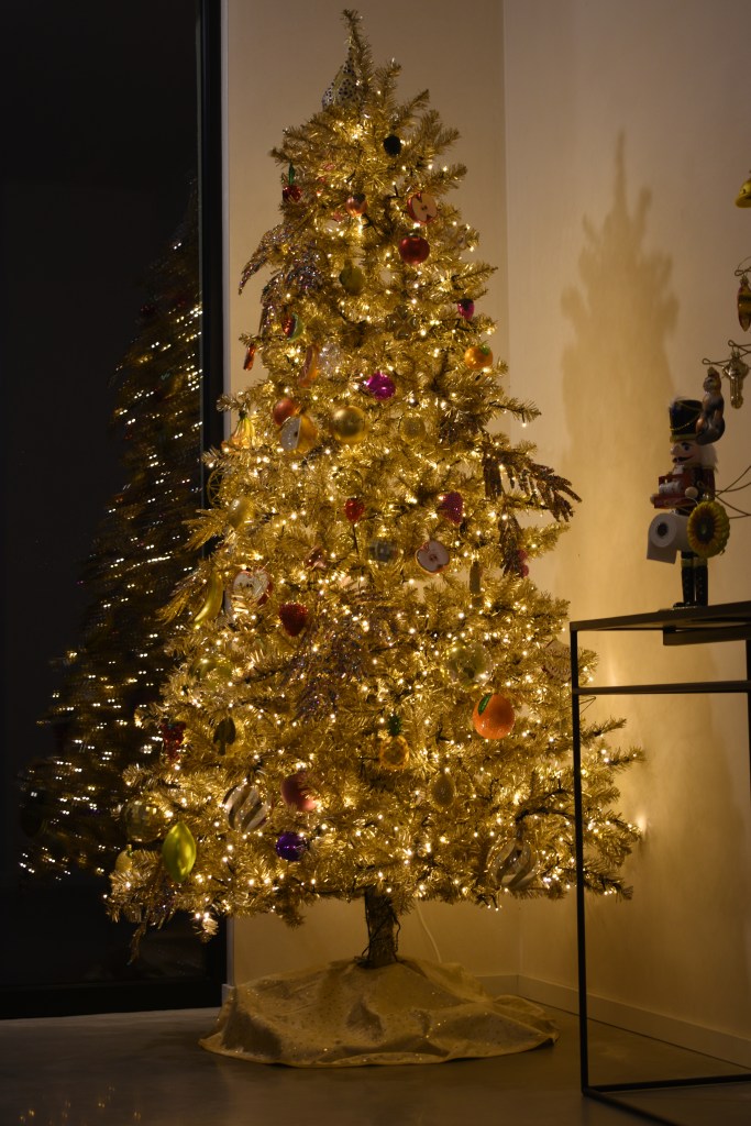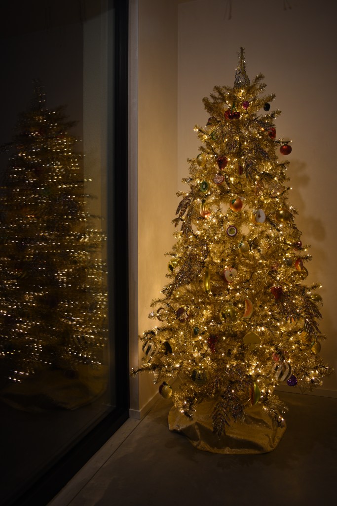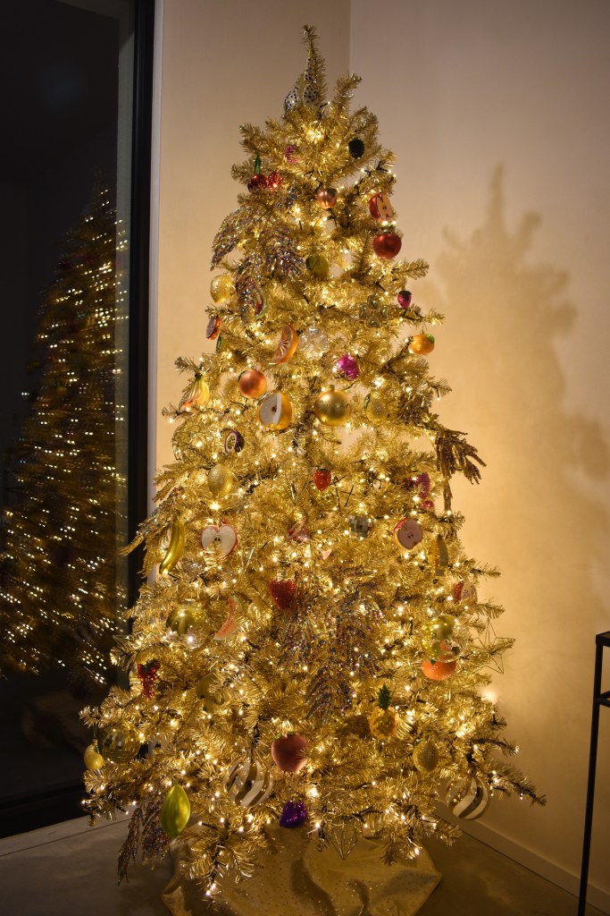 ⚜️🍋Vandaag neem ik jullie mee naar onze inkomhal waar mijn ‘gouden’ boom een plaatsje kreeg recht voor de voordeur. Een warm en feestelijk welkom. Dit jaar vond ik het na jarenlang fruitornamenten verzamelen (dit jaar eindelijk een passievrucht gevonden!) van uiteenlopende merken en uit het buitenland hoog tijd om eens een fruitboom te maken. Want why not eigenlijk? Sommige ornamenten kocht ik wel héél ver weg: in Georgia, op de Florida Keys … Ook hier zorgt het grote raam van de inkomhal voor een prachtige reflectie van het licht. ✨