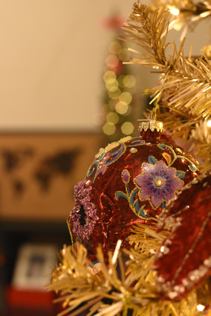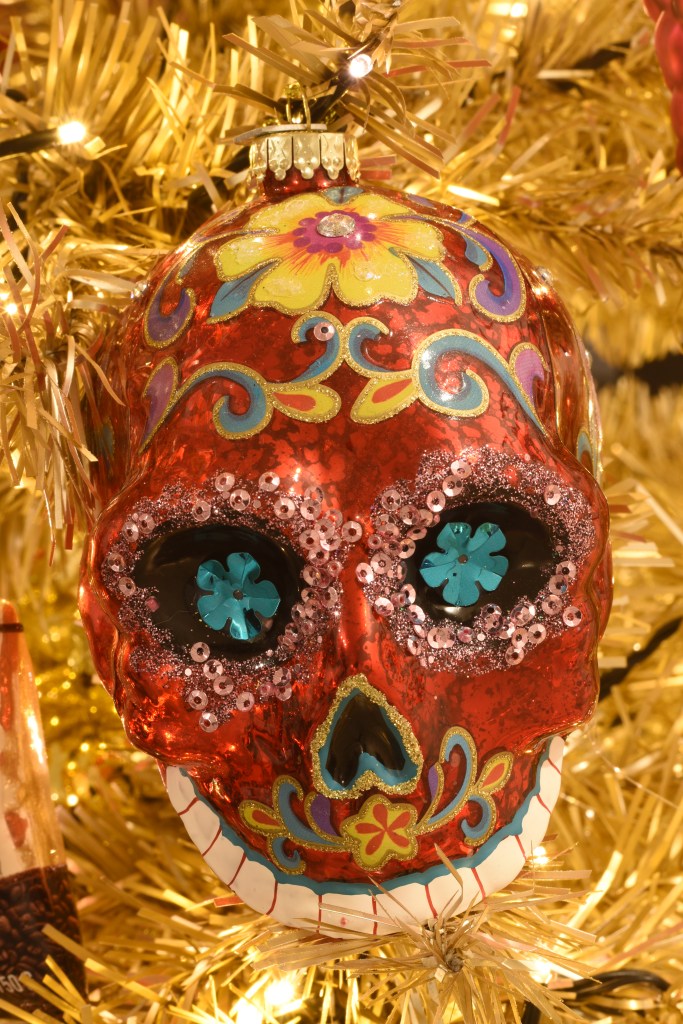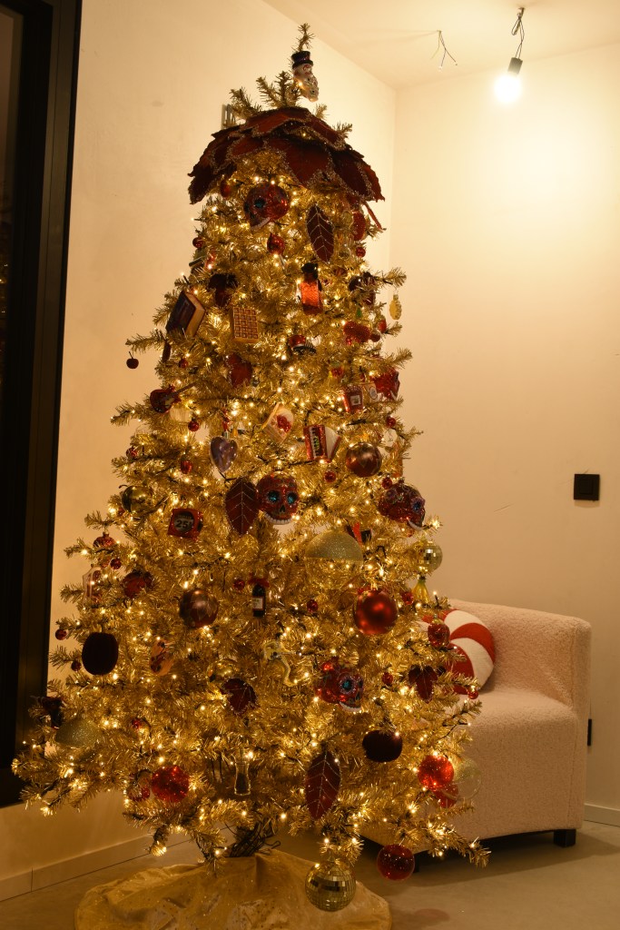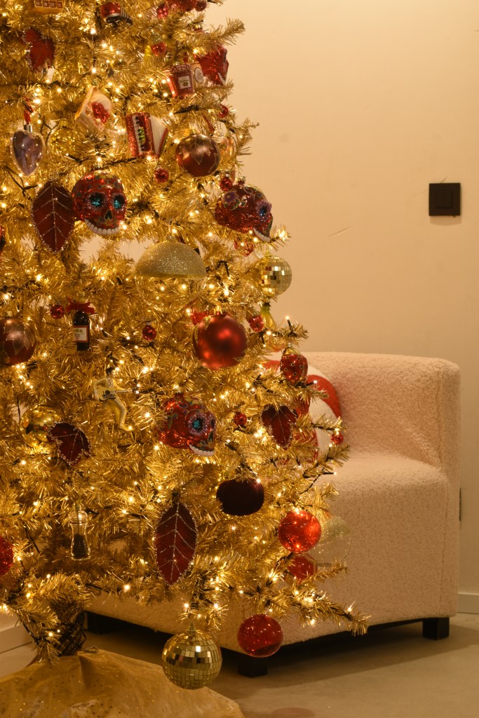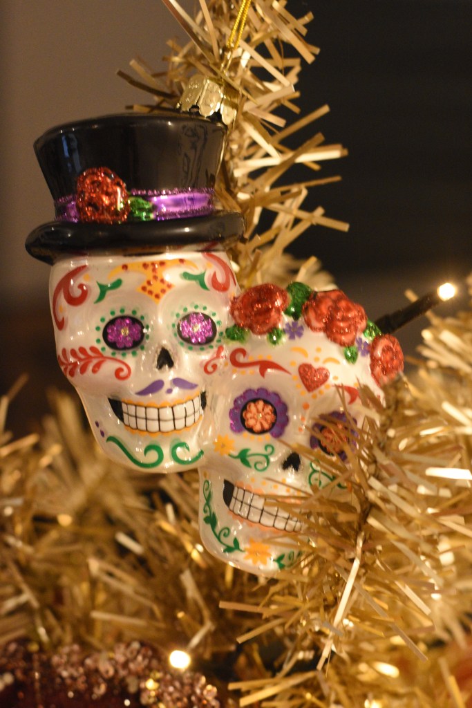 De versierde skulls zijn dan weer een knipoog naar Día de los Muertos, de prachtige manier waarop Mexico de doden viert. Sinds we er drie jaar geleden een traditie van maakten om met Halloween of Allerheiligen naar de film Coco te kijken, hebben we zoveel voeling met en respect voor deze feestdag gekregen dat de skulls een plaatsje verdienen in deze boom. Ooit gaan we naar Mexico met Día de los Muertos.