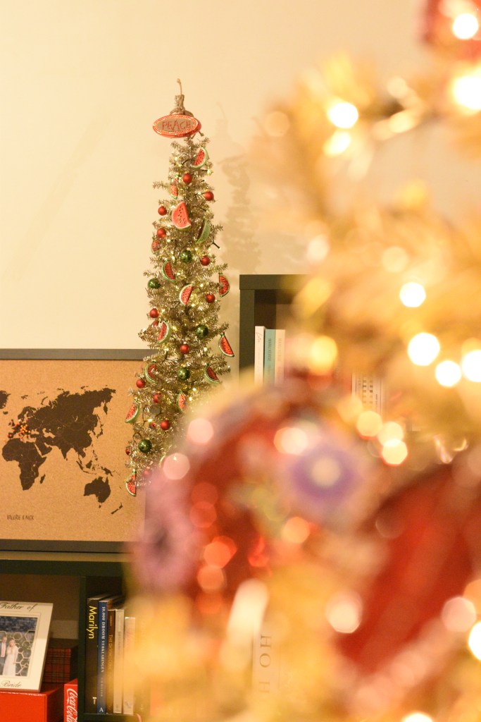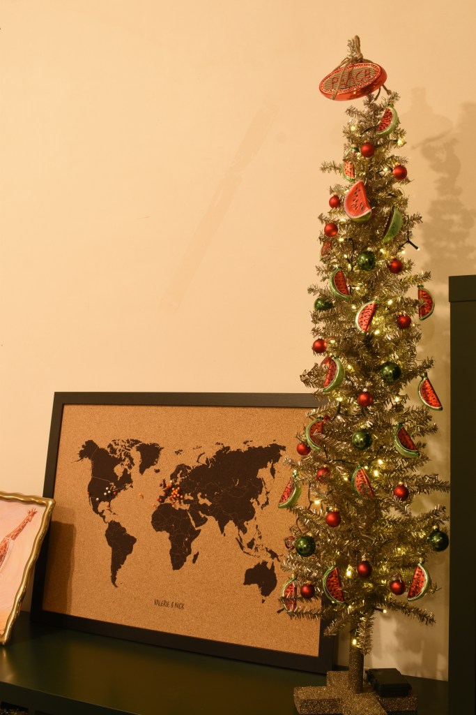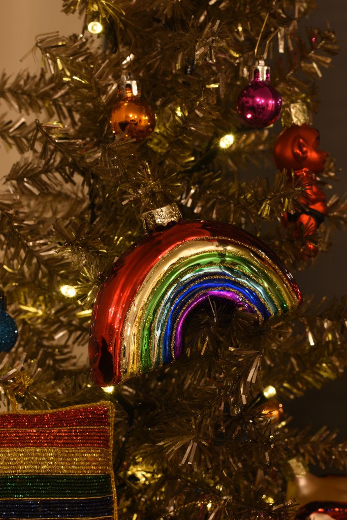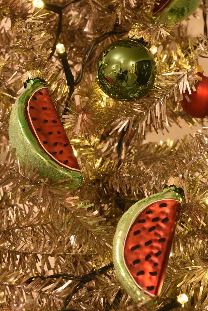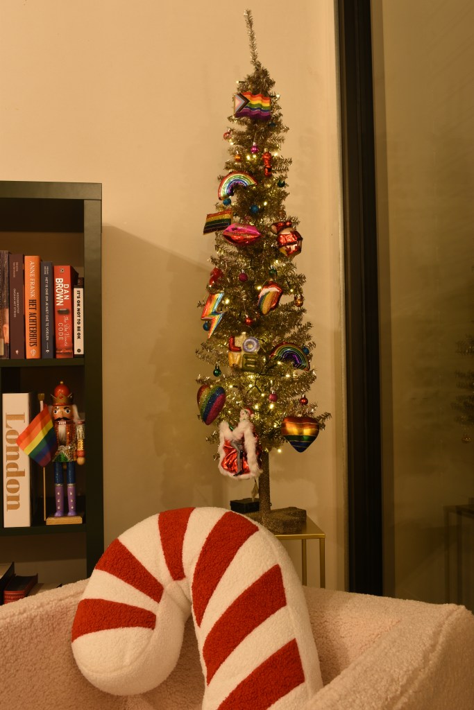 Dit jaar wilden we met kerst ook een statement maken. Op de barricade staan, vanop afstand dan tenminste, met symbolen van onrecht in de wereld: watermeloenen voor de genocide in Gaza, maar ook in Oost-Congo, Soedan … Ook voor de LGBTQIA+-rechten die steeds meer teruggedrongen worden, blijven we onze mond opentrekken. Het is nog steeds nodig.